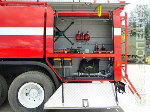 Система компрессионной пены NATISK-800KS. Привод компрессора воздушного от трансмиссии шасси. Рабочее давление 3-10 атм. Максимальный расход раствора 800 л/мин. Дальность струи из ствола ручного до 35 м. Максимальный расход сжатого воздуха 4 600 л/мин. Кратность 5-20. Дозирование пенообразователя 0,6 – 6%. Внутренний диаметр ствола ручного 25 мм (3 шт). Объем производимой пены от 25 000 л («мокрая пена») до 100 000 л («сухая пена»). Базовое шасси КАМАЗ-43118. Колесная формула 6х6. Мощность двигателя 300 л.с. Экологический класс Евро-5. Боевой расчет 6 чел. Цистерна для воды 5 000 л. Пенобак 300 л. Насос пожарный НЦПН-40/100.