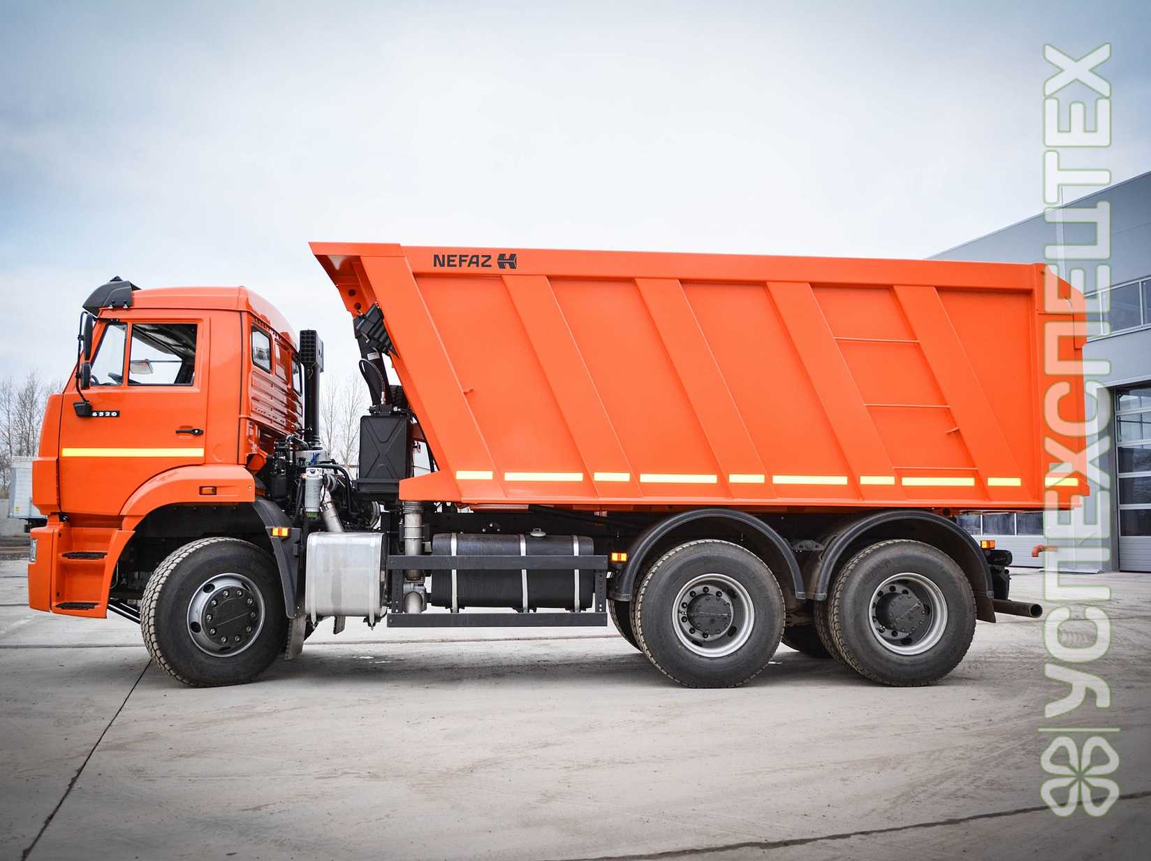 Задняя разгрузка, прямоуг.сеч, МКБ, МОБ, дв. КАМАЗ-740.735-400 (E-5), топл. ап. BOSCH, система нейтрализ. ОГ(AdBlue), Common Rail, пневмоподв. каб., обогрев платф., тахограф российского стандарта с блоком СКЗИ