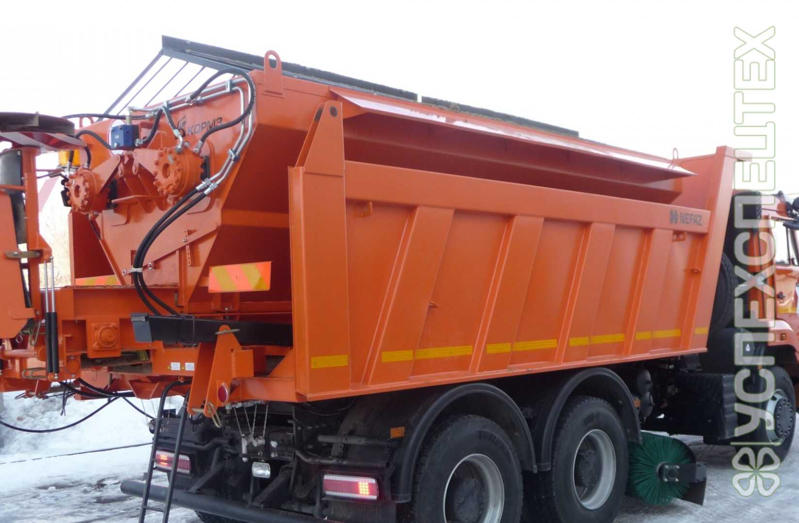 Обеспечивает безопасное распределение противогололедных материалов с возможностью регулирования по высоте разбрасывающего диска, ширине и направлению посыпки. Оборудован специальным устройством для полной загрузки бункера и исключающим зависание смеси на его стенках.