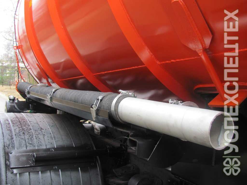 В состав специального оборудования входят цистерна, вакуумный насос с приводом, всасывающая стрела, гидравлическая, пневматическая и электрическая системы и дополнительное оборудование.Управление всасывающей стрелой ведётся с дистанционного пульта управления. Выгрузка ила производится опрокидыванием цистерны.