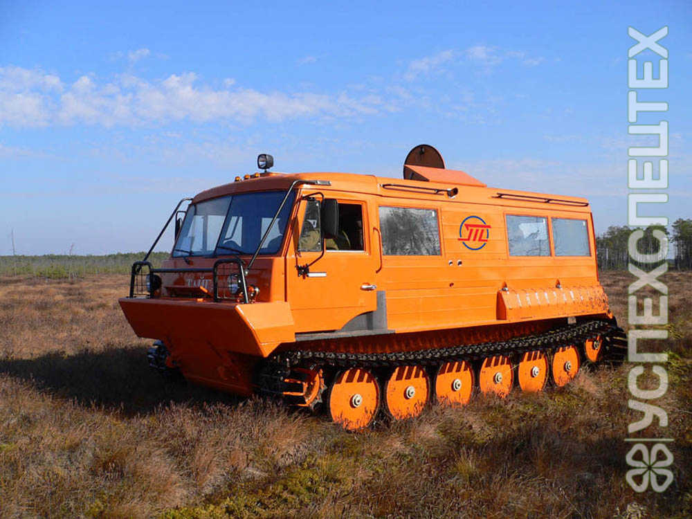 Продукт сертифицирован. Гусеничная плавающая машина высокой прорходимости предназначена для перевозки грузов и монтажа различного оборудования на платформе закрытой тентом. Машина имеет 6-ти местный салон. Организуется 2 полноценных спальных места. По требованию Заказчика машина может быть оборудована погрузо-разгрузочными устройствами. Эксплуатируется на грунтах с низкой несущей способностью, включая снежную целину без ограничения глубины снежного покрова, сыпучие пески, болота всех категорий и открытые водоемы. На большие расстояния машина может транспортироваться в кузове автомобилей типа КАМАЗ, МАЗ.