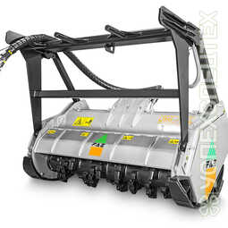СпецификацияЛесная фреза с ротором с фиксированными зубьями для мини-погрузчиков мощностью от 75 до 120 л.с. с высоким гидравлическим потоком.