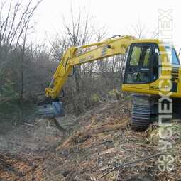 СпецификацияЛесная фреза с ротором с фиксированными зубьями для экскаваторов массой от 110 до 200 т.