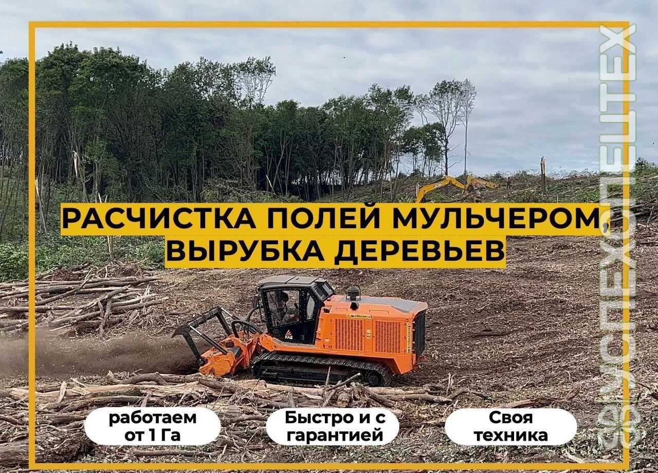 Расчистка участка мульчером от 1 Га, спил деревьев