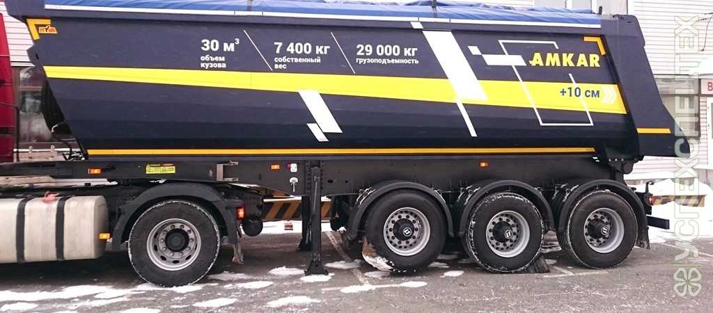 33 т. 30 м³. Длинна платформы 8300 мм. Задняя разгрузка. Трёхосный. Односкатный. Пневматическая подвеска и оси BPW. Высота ССУ 1300-1400 мм. Гидроцилиндр Hiva. Полог. Боковые борта из импортной стали. Подъемная ось.
