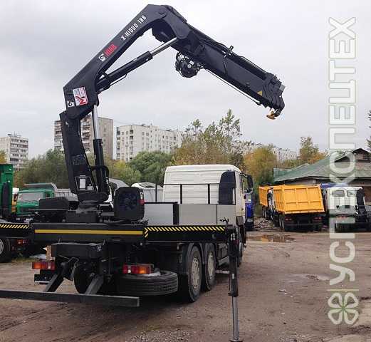 Грузоподъемность борта 10 тонн, грузоподъемность стрелы 3 тонны, вылет стрелы 8 м. Размеры 2,40×6м.