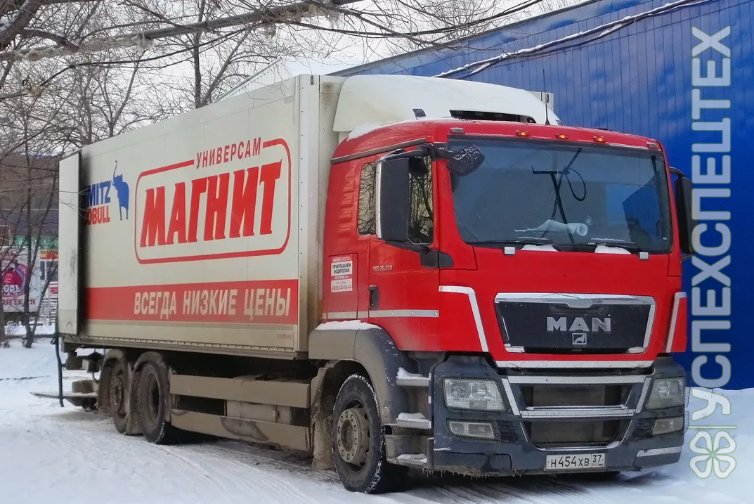 MAN TGS 26.36 6X2-2 BL-WW Автомобиль рефрижератор Технические данные Грузоподъемность шасси 16 500 кг Полная масса автопоезда 40 000 кг Снаряженная масса 9 500 кг Полная масса: 26 000 кг на переднюю ось 7 000 кг на вторую ось 11 500 кг на третью ось 7 500 кг Двигатель Норма токсичности ЕВРО V Мощность 360-480 л.с. (265 кВт.) при 1900 мин -1 Крутящий момент 1800 Нм при 1000…1300 мин -1 Круиз-контроль Регулируемый моторный тормоз (EVBec) Ограничитель скорости (89 км/ч) Трансмиссия Колесная формула 6Х2-2 Коробка передач ZF 16 передач Однодисковое сцепление DTE 430 Передний мост VOK-09 с изгибом Задний мост c гипоидной главной передачей HY-1350 Поддерживающая ось NO-08 за ведущим мостом жесткая, подъемная Шасси Шины 375/70 R22.5 Подвеска: передняя параболические рессоры 8 Задняя: пневматическая 11,5 т Стабилизаторы поперечной устойчивости неподъёмных осей Топливный бак 400 л. (по заказу один бак 700л либо два бака 490+390л топлива) Антиблокировочная система (ABS) Противобуксовочная система (ASR) Электронная система устойчивости (ESP) Кабина Просторная кабина серии “L” с одним спальным местом Люк на крыше кабины Климат-контроль/кондиционер Зеркала с электроприводом и электрообогревом Электростеклоподъемники боковых дверей Пластиковые моющиеся покрытие пола и дверей Розетка в кабине 12В и 24В. Тахограф цифровой Магнитола MAN Media Truck 12 В с 5-дюймовым цветным дисплеем, AUX-in/USB на панели управления Подготовка под радиостанцию Противопылевый и антиаллергенный фильтр Пакет для тяжелых дорожных условий Блокировка дифференциала ведущего моста Центральная буксировочная проушина впереди и сзади Зимний пакет Аккумуляторы 230Ач, 2 шт. Генератор 120А Предпусковой подогреватель 10 кВт. Шторка радиатора Осушитель воздуха с подогревом Подогрев топливного фильтра Подогрев дополнительного топливного водоотделителя Электрофакельное устройство облегчения холодного пуска Предпусковой подогреватель* Термокейс АКБ с подогревом* Электроподогрев топливозаборника, топливопровода* Фургон рефрижератор Кузов-фургон из 3-5 слойных сэндвич панелей Максимальные внутренние размеры, мм (д х ш х в) 9000 х 2440 х 2550 Холодильная установка Carrier Supra 750R. Обвязка груза по боковинам Распорные штанги Алюминиевая чаша в кузове (по заказу) Погрузочный борт (по заказу)