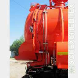 СпецификацияВ основную комплектацию специального оборудования входят: цистерна с откидным донышком и механизмом опрокидывания; вакуум-нагнетательная система, включающая в себя вакуумный насос и четырехходовый кран; водяные баки и водяной насос высокого давления, гидросистема, пневмосистема, электрооборудование, а также комплект всасывающих рукавов (4 рукава по 2м) (с условным проходом Dy 100 мм) с насадками, размывочный пистолет и барабан с рукавом высокого давления длиной 10 м (Dy 12 мм).