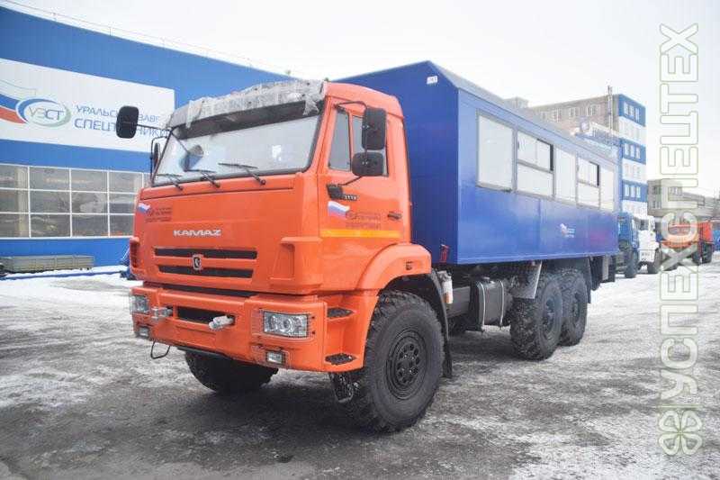 Вахтовый автобус на шасси КАМАЗ 5350 предназначен для перевозки вахтовых бригад по дорогам общей сети.