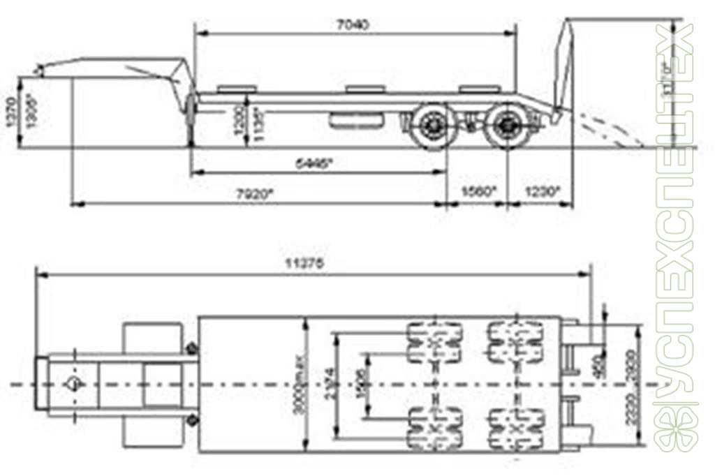 Трал относится к прицепам низкорамного типа, имеет ширину 2,74 метра, которая может быть увеличена за счёт уширителей до 3,24 метра. При грузоперевозках обеспечиваются высокая устойчивость даже при большой массе груза.
