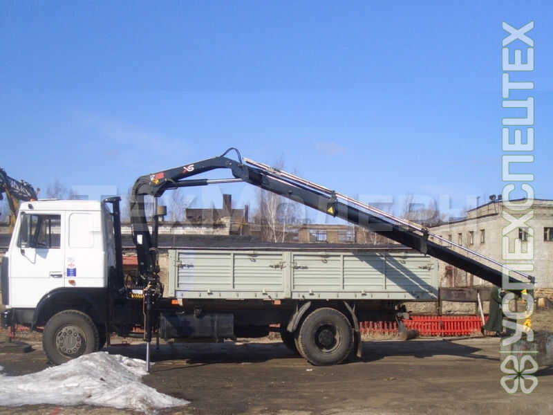 Грузоподъемность стрелы 1,5т, грузоподъемность автомобиля 3т, вылет стрелы 6м, габариты платформы 2,05х4,15м