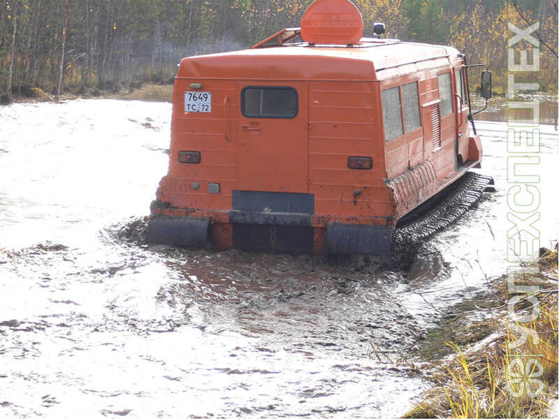 Снаряженная масса, кг 7850. Среднее давление на грунт, кг/см2 0,17. Максимальная скорость, км/ч 54. Максимальная скорость на плаву, км/ч 5. Количество мест в кабине 6. Количество спальных мест 2. Габаритные размеры (LxBxH), мм 6480х2940х2600. Ширина по корпусу, мм 2500. Двигатель Cummins-4ISBe185 Турбодизель, Р4, 4,5 л., 185 л.с.. Коробка передач 6-ст., механическая, ZF 6S 1000 (Германия). Управление автомобильного типа (рулевое колесо) с гидроусилителем ИЛИ рычажное управление (на выбор). Дополнительное оборудование * агрегат сварочный двухпостовой (или однопостовой). Номинальный сварочный ток, А до 400. Преодолеваемый подъем на твердом сухом грунте с полной нагрузкой, ° не менее 30. Допускаемый боковой крен на твердом сухом грунте, ° не менее 25. Минимальный радиус поворота, м 2,2.