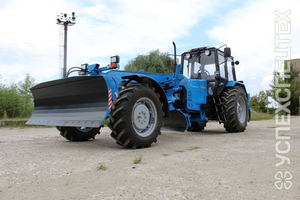 Базовый трактор БЕЛАРУС-92П, БЕЛАРУС-892.2, БЕЛАРУС-82.1.23/12 Двигатель Д-245.5 Д-245.5С Д-243 Мощность, кВт (л.с.) 65 (86) при 1800 об./мин. 66 (90) при 1800 об./мин. 60 (83) при 1800 об./мин. Трансмиссия однодисковая сухая муфта сцепления, диапазонная 8-скоростная механическая коробка передач, полный реверс, карданный привод переднего моста, однодисковая сухая муфта сцепления, механическая 18-скоростная ступенчатая коробка передач, с понижающим редуктором, полный реверс, карданный привод переднего моста Шины колес: передние 360/70-24 задние 18,4 R34 Максимальная скорость движения: вперед, км/ч: 20 41 34 назад, км/ч: 11 11 9 рабочая минимальная, км/ч 1,89 2,26 0,9 Колесная схема 1х2х2 Радиус поворота, м 8,65 Колесная база, мм 5000 База отвала, мм 1680 Длина отвала, мм 2800 Углы резания отвала, градусов от 40 до 60 Угол поворота отвала, градусов до 40 в каждую сторону Передний отвал (стальные каленые ножи): длинна отвала, мм 2250