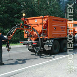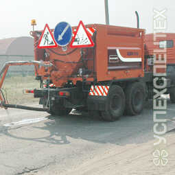 СпецификацияБазовое шасси КамАЗ-65115 Двигатель дизельный с турбонадувом CUMMINS 6ISBe4 300 Максимальная мощность, л.с. (кВт), при 2500 об./мин.: 298 (219) Комплект оборудования для ямочного ремонта Объем бункера для щебня, м3 5–10 мм 2,4 10–15 мм 2,4 Объем бака для воды, л 820 Объем бака для эмульсии, л 1100 Максимальная подача щебня, кг/час 2200 Силовая установка Д-243 Снаряженная масса машины, кг не более 12750 Полная масса машины, кг не более 22150 Максимальная скорость движения при полной нагрузке на прямом горизонтальном участке дороги, км/час 50 Габаритные размеры, не более, мм 8850х2500х3180 Применяемые для ремонта материалы щебень фракции 5 – 15 мм битумная эмульсия с коротким временем распада по ГОСТ Р 52128-2003