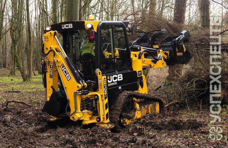 Экскаватор-погрузчик с бортовым поворотом JCB 1 СXT на гусеницах обеспечивает производительность и универсальность двух машин в одном компактном корпусе.