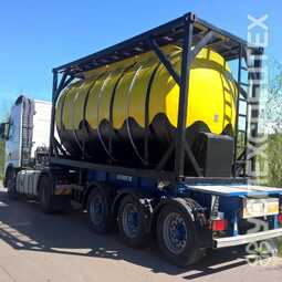 СпецификацияМатериал: химстойкое стекловолокно, емкость: 20 куб.м., сечение: круглое, конструкция: однослойная или трехслойная (волокно, утеплитель, волокно), металлическая защитная рама на контейнерных замках, перевозимые жидкости: кислота, нефть, техническая вода, гсм.