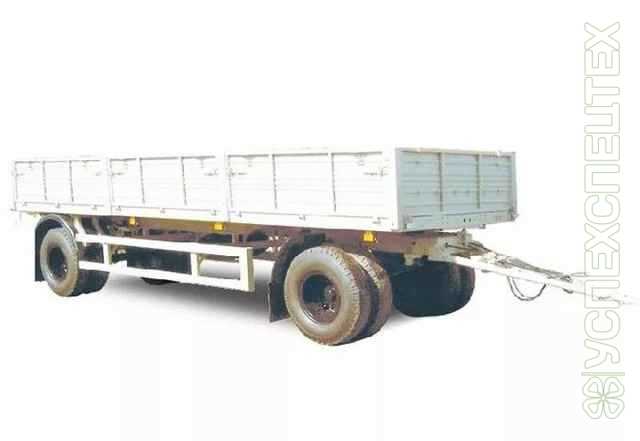 Прицеп бортовой предназначен для транспортировки различных грузов, в том числе сыпучих, а так же зерновых сельскохозяйственных культур. Бортовая платформа: стальная, прямоугольного сечения. Боковые и задние борта платформы сочленены из двух бортов. Верхний борт – неподвижный, жестко крепится к стойкам платформы. Нижний борт – подвижный с верхней навеской, шарнирно крепится к нижней кромке верхнего неподвижного борта. Запоры бортов – механические, открываются вручную. Конструкция платформы включает в себя две пары стяжек средних стоек, увеличивающих жесткость кузова в поперечном направлении. Платформа оснащена быстросъемным тентом. Тент сворачивается в продольном направлении с помощью наматывающего устройства. В передней части платформы имеется откидная площадка для удобства обслуживания тента.