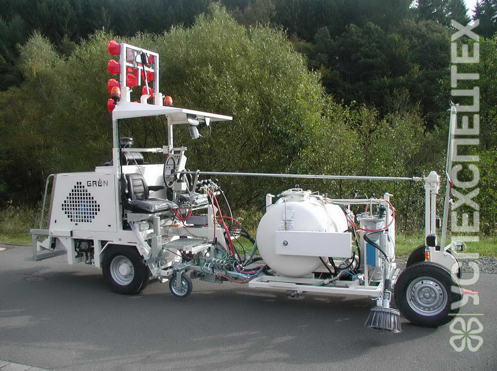 Машина для разметки холодным спрейпластиком. Внутреннее смешивание в смесительной головке. Оснащается разметочным компьютером. Запуск двигателя электростартером. Подача стеклошариков. Скорость передвижения до 16 км/час. Два бака для компонентов и бак для растворителя. Съёмный пистолет для спрейпластика и стеклошариков. Автоматическая промывка.