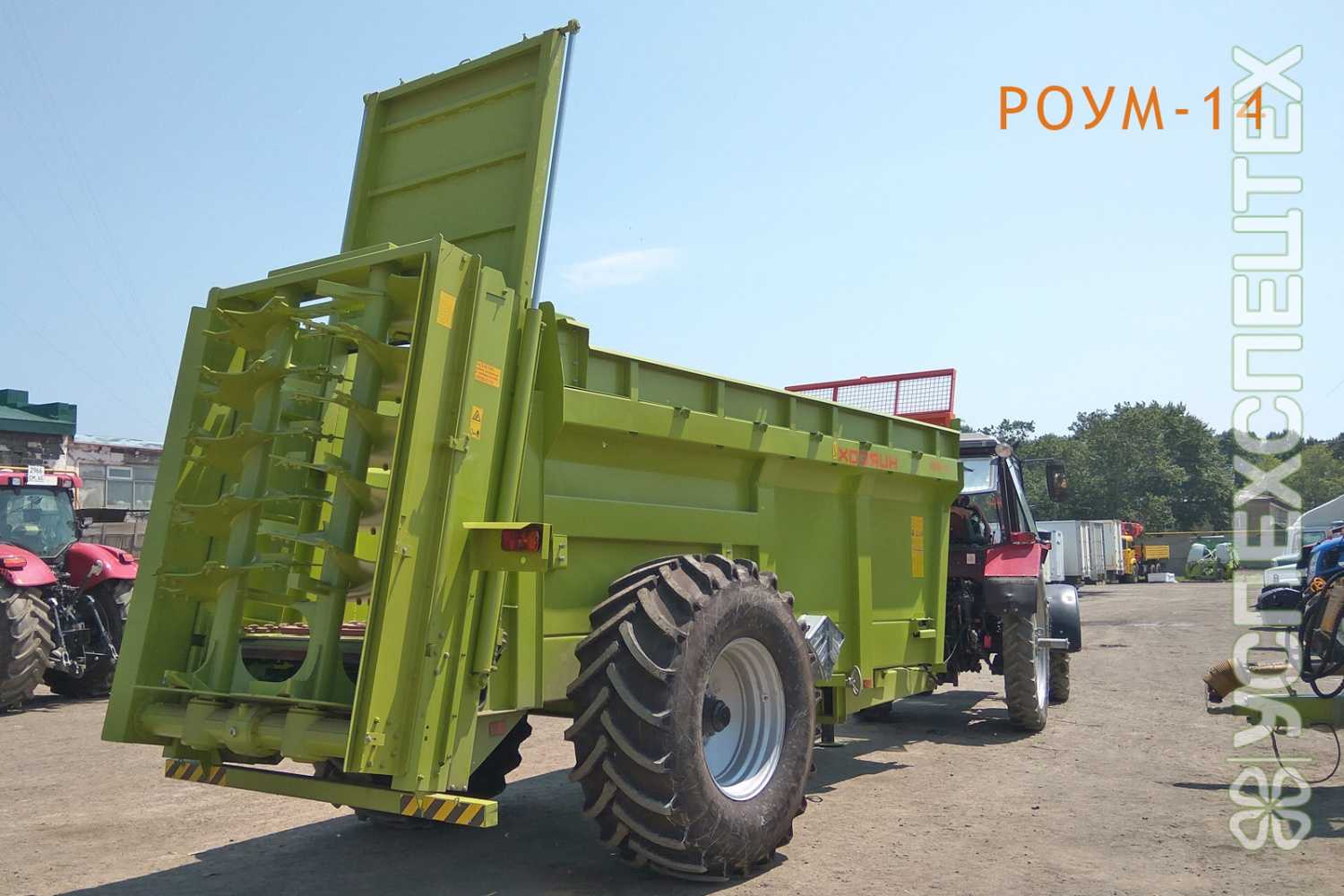 РОУМ-14 - единственный производимый в России одноосный разбрасыватель твердых органических удобрений грузоподъемностью 14 т. Предназначен для поверхностного внесения в почву твердых органических удобрений.