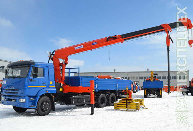 Этот бортовой автомобиль оборудован подъемным устройством, которое вмонтировано в кузов вблизи водительской кабины. Таким образом, с помощью манипулятора 10 тн возможно совершать процессы в стесненных условиях, в которых стационарный автокран и автомобиль просто не поместятся.
