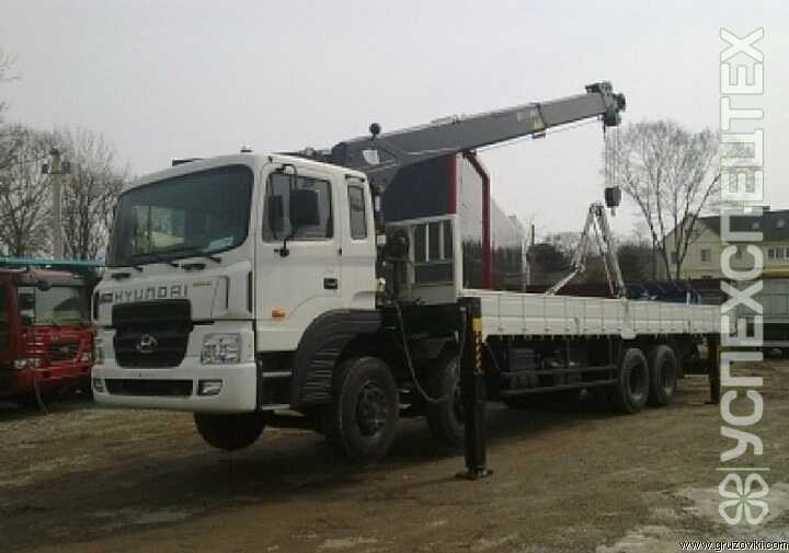 Бортовой автомобиль Hyundai HD120 с крановой установкой грузоподъемностью 5 тн популярен среди компаний, которые занимаются строительством или транспортировкой грузов.