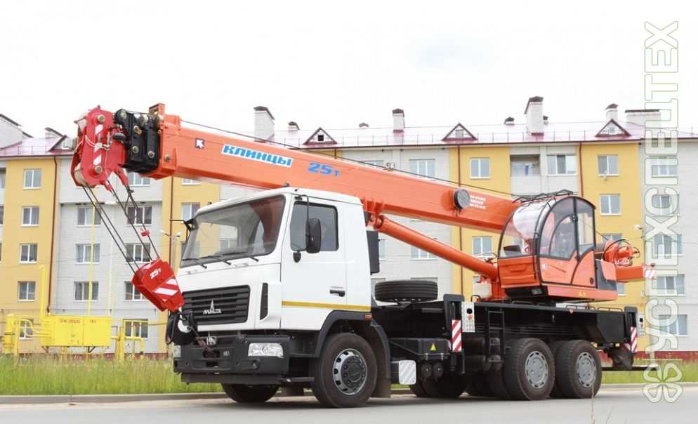 Грузоподъемность 25 тонн, вылет стрелы 22,28,31 м. Есть вездеходы.