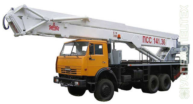 На базе автокрана, длина стрелы от 21 до 39 м.