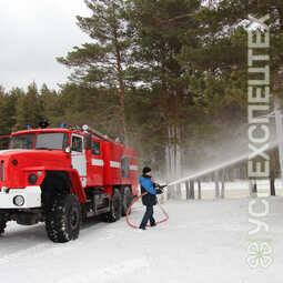 СпецификацияБазовое шасси УРАЛ — 5557. Колесная формула 6х6. Мощность двигателя, л.с. 230. Тип двигателя дизельный. Габаритные размеры, мм 8695х2500х3100. Боевой расчет, чел 7. Вместимость цистерны для воды, л 3000. Емкость для пенообразователя, л 180. Действующее полное наименование АЦ-СПК-3,0-40 (5557). Технические характеристики СИСТЕМЫ NATISK: технология подача высокоэффективной компрессионной пены, объем производимой пены, л от 15 000 (мокрая пена) до 60 000 (сухая пена), дозирование пенообразователя, % 0,2-6,0, расход пены, л/с 50, дальность подачи пены через ствол ручной, м до 40 м, количество стволов, подающих пену 2, количество стволов, подающих воду 2, запас воздуха на вспенивание неограничен, диаметр рукавных линий, мм 51, длина рукавных линий, м 400.