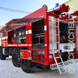 СпецификацияБазовое шасси Камаз — 43118. Колесная формула 6×6. Мощность двигателя, кВт (л.с.) 205,94 (280). Тип двигателя дизельный. Вид топлива ДТ. Габаритные размеры, мм 8650х2500х3300. Боевой расчет, чел. 7 (6+1). Вместимость цистерны для воды, л 6000. Вместимость пенобака, л 360. Тип применяемого пожарного насоса НЦПН-40. Номинальная подача (ступень нормального давления), л/с 40. Номинальный напор (ступень нормального давления), м. вод. ст 100. Расположение пожарного насоса заднее. Вакуумная система АВС-01Э. Наибольшая высота всасывания, м 7,5.