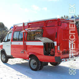 СпецификацияБазовое шасси ГАЗ-27057. Колесная формула 4х2. Мощность двигателя, л.с. 106,8. Тип двигателя инжекторный. Боевой расчет, чел 4. Габаритные размеры, мм 6000х2100х2800. Вместимость цистерны для воды, л 300. Емкость для пенообразователя, л 10. Запас воздуха на вспенивание в балонах. Количество стволов, подающих пену 1. Количество стволов, подающих воду 0.