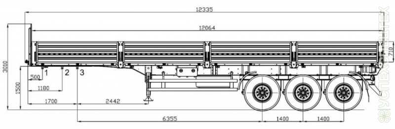 Внутренние размеры кузова, мм. L=14 380, H=600 (бортов); H=1 500 (переднего щита)
