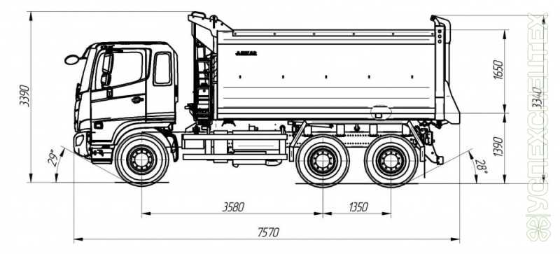 Кузов самосвал предназначен для транспортировки различных строительных, промышленных и сельскохозяйственных грузов.