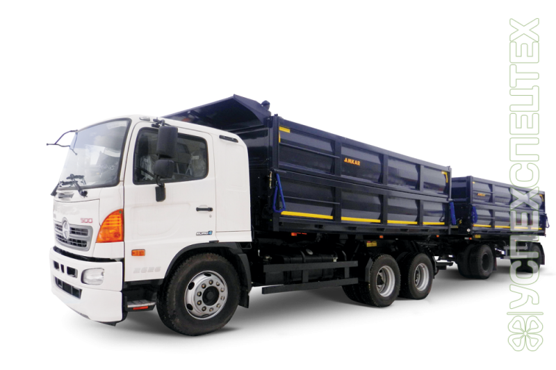 Бортовой автомобиль предназначен для перевозки зерна. Оборудован металлической платформой. Платформа: стальная, квадратного сечения. Нижние боковые борта – подвижные могут открываться с верхней и нижней навеской. Запоры бортов – механические, открываются вручную. Для удобства сматывания и разматывания тента на борту установлена площадка. Подвеска прицепа рессорная, ошиновка двухскатная. Резина 10R/20.
