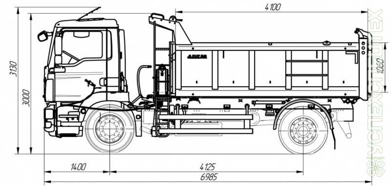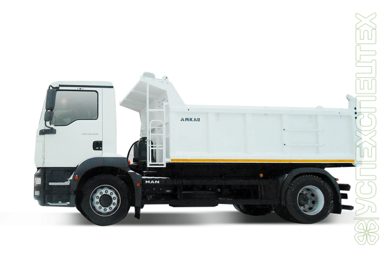 Автомобиль-самосвал предназначен для перевозки различных сыпучих строительных, промышленных грузов и для дальнейшего дооборудования под коммунально-дорожную машину. Платформа стальная, квадратного сечения. Задний борт имеет верхнюю навеску. Запоры заднего борта механические, срабатывают автоматически при подъеме/опускании платформы. Управление подъемом электропневматическое из кабины.