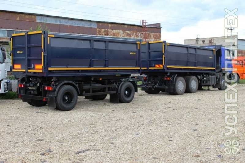 Опрокидывающее устройство прицепа гидравлическое с приводом от насоса через коробку отбора мощности . Управление подъемом электропневматическое из кабины.