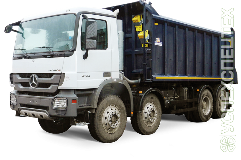 Для перевозки сыпучих грузов кузов оборудован задним откидным бортом с верхней осью вращения. Грузоподъемность 45 тонн.