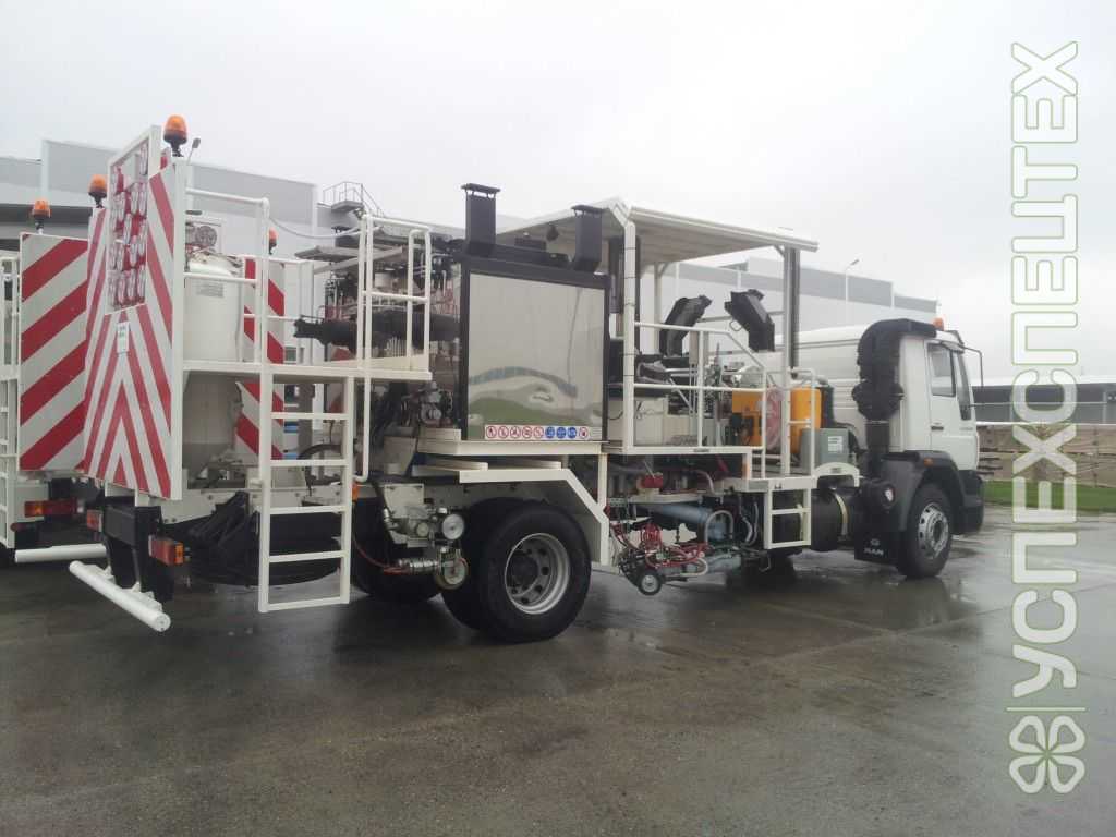 Машина для разметки холодным спрейпластиком. Внутреннее смешивание в смесительной головке. Оснащается разметочным компьютером. Запуск двигателя электростартером. Подача стеклошариков. Скорость передвижения до 16 км/час. Два бака для компонентов и бак для растворителя. Съёмный пистолет для спрейпластика и стеклошариков. Автоматическая промывка.