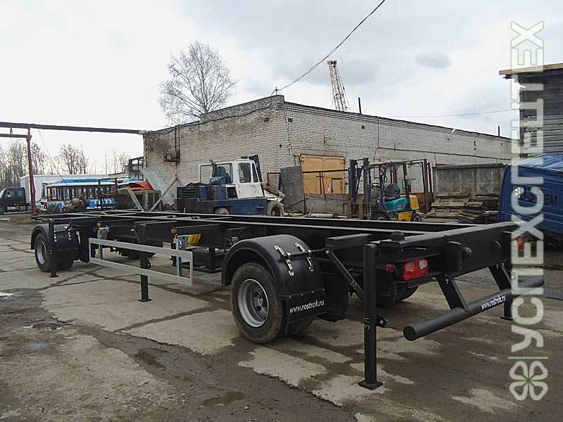 Объем кузова, м3 30 Грузоподъемность, кг 21000 Снаряженная масса прицепа, кг 9000 Полная масса прицепа, кг 30000 Распределение полной массы, кг - на переднюю ось - 10000 - на заднюю тележку 20000 Габаритные размеры, не более, мм - длина - 8900 - ширина - 2500 - высота - 3950 Внутренние размеры кузова, мм - длина - 5640 - ширина - 2380 - высота - 2240 Толщины элементов кузова, мм - днище - 8 - передний борт - 5 - боковые борта - 5 - задний борт - 5 Колесная база, мм 2950+1310 Угол подъема кузова, град 51 Гидроцилиндр Nummi RT(Финляндия) Подвеска одноосная+двухосная рессорно-балансирная Требования к шасси Шасси должно быть оборудовано сцепным устройством, также необходимы выводы ABS,электрики и гидросистемы на прицеп. Доработка может быть произведена на территории ООО «Рострак».