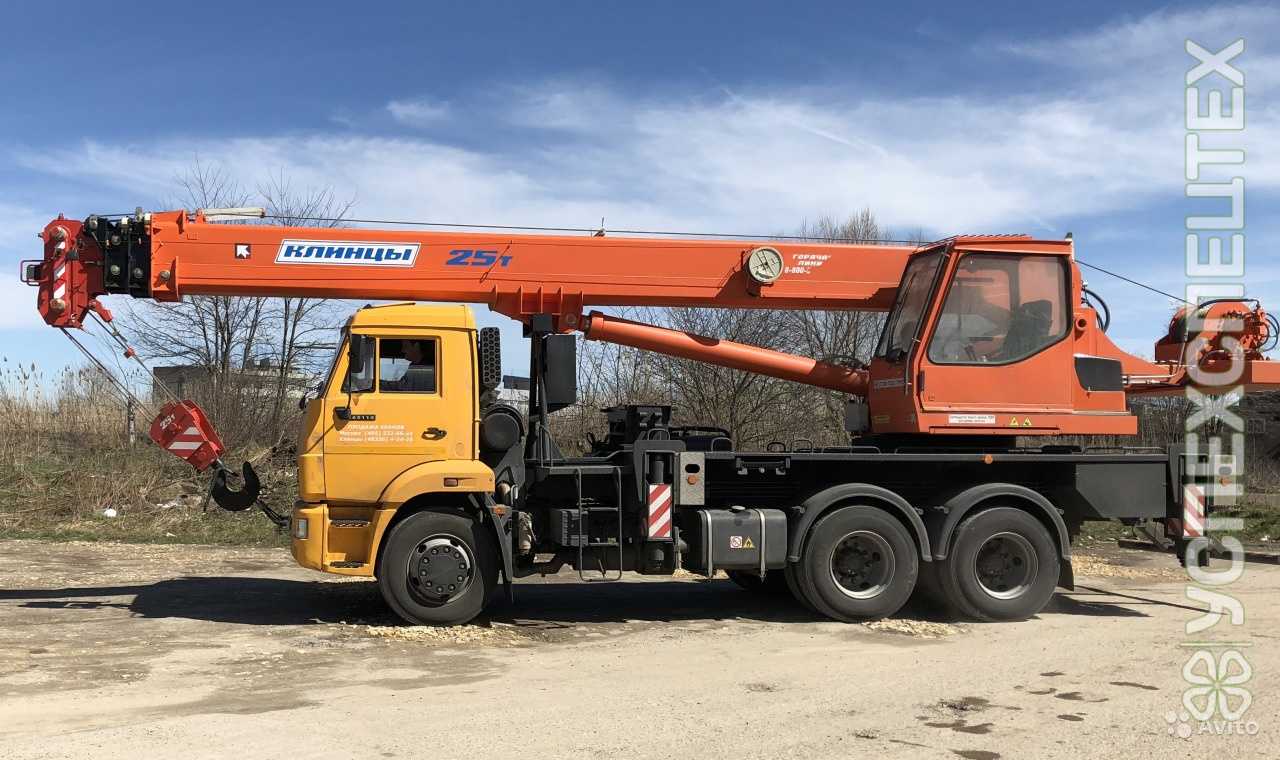 Кран автомобильный КС-55727-F, КС-55727-S грузоподъемностью миди (на канатах) 25 т предназначен для выполнения погрузочно-разгрузочных и строительно-монтажных работ c обычными грузами на рассредоточенных объектах.