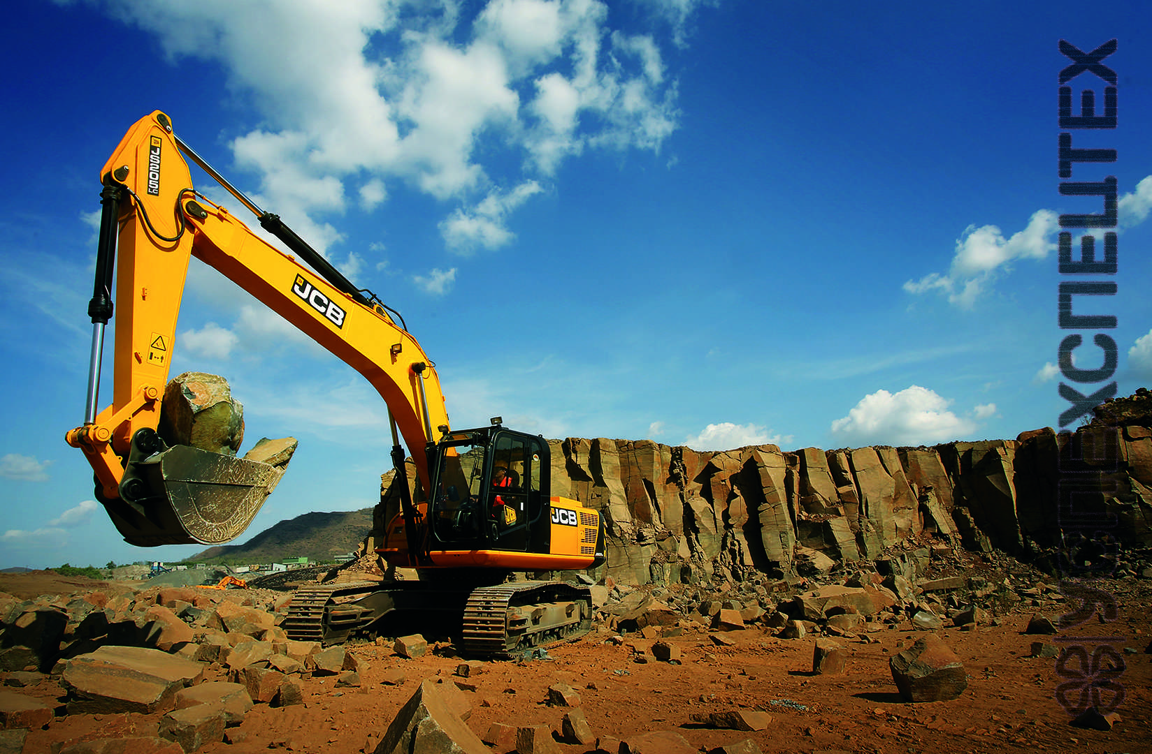 Усиленные ходовая тележка и рукоять стрелы свидетельствуют о надежности конструкции и возможности использования экскаватора в тяжелых условиях эксплуатации;