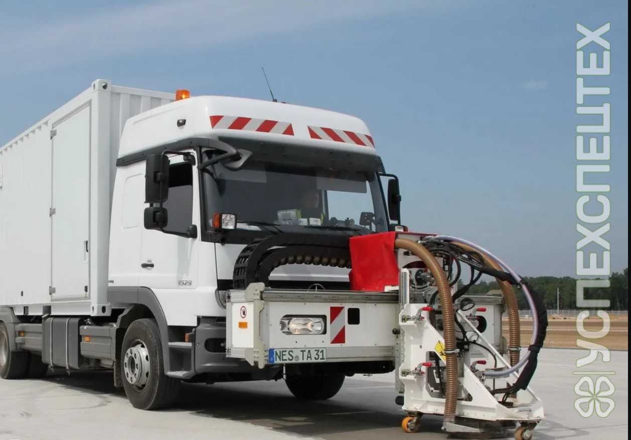 Водоструйный демаркировщик высокого давления 2500 бар фирмы PeelJet (Winter/Gruen) Германия. Вакуумная уборка отходов. После работы машины остаётся только мокрый след от воды, как после мойки. Удаление продольной и поперечной разметки, следов резины со взлётно-посадочных полос на аэродромах.