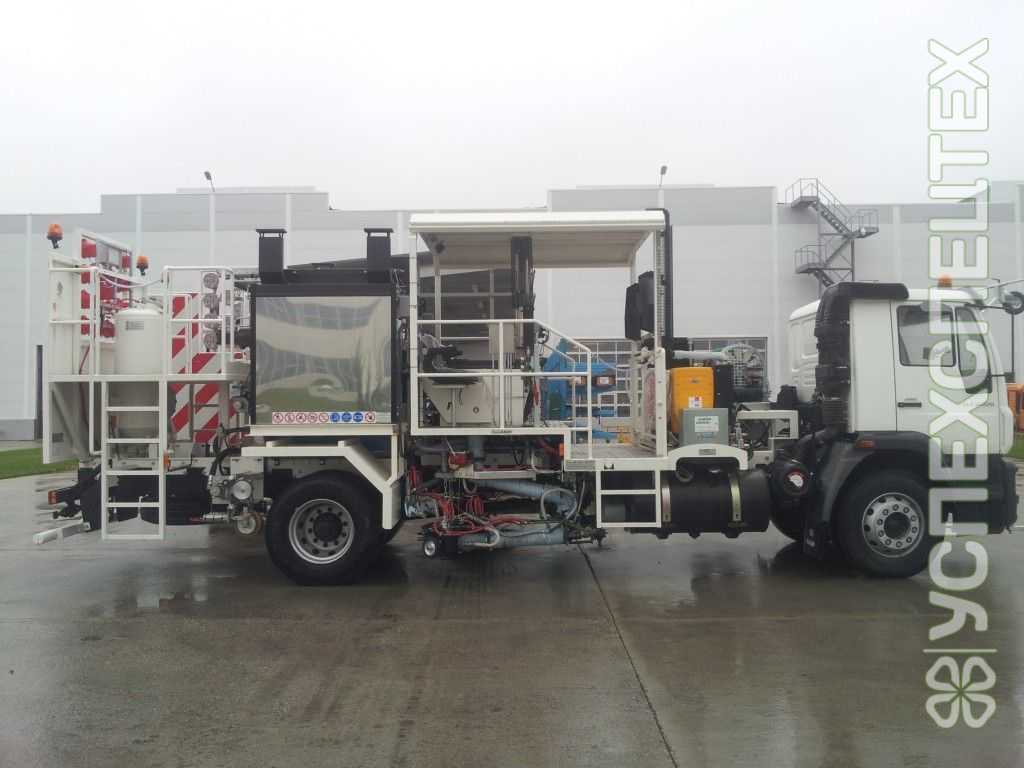 Машина для разметки холодным спрейпластиком. Внутреннее смешивание в смесительной головке. Оснащается разметочным компьютером. Запуск двигателя электростартером. Подача стеклошариков. Скорость передвижения до 16 км/час. Два бака для компонентов и бак для растворителя. Съёмный пистолет для спрейпластика и стеклошариков. Автоматическая промывка.