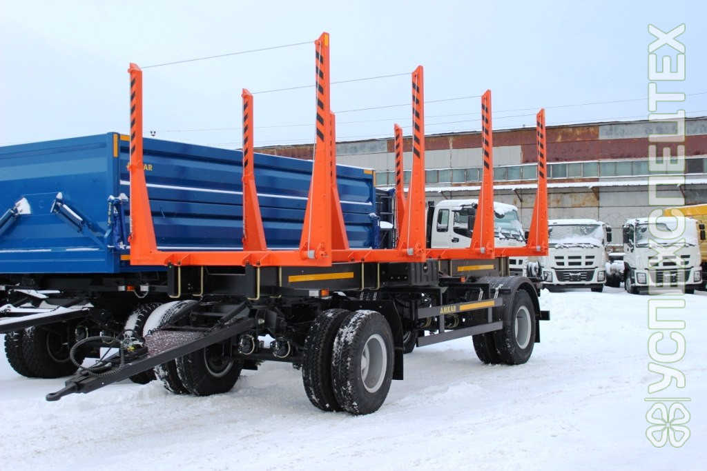 Прицеп двух осный, в зависимости от применяемого шасси прицепа может быть как двух скатным и односкатным. Грузоподъемность прицепа сортиментовоз 12 тонн.