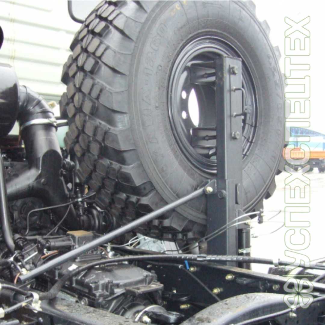 Грузовые транспортные средства КАМАЗ часто используются для перевозок на длительные маршруты, что имеет некоторые риски. Одной из неприятных ситуаций является необходимость замены колеса. Стандартное крепления запаски на КАМАЗах не очень удобное, поэтому выходом является установка дополнительного держателя запасного колеса.
