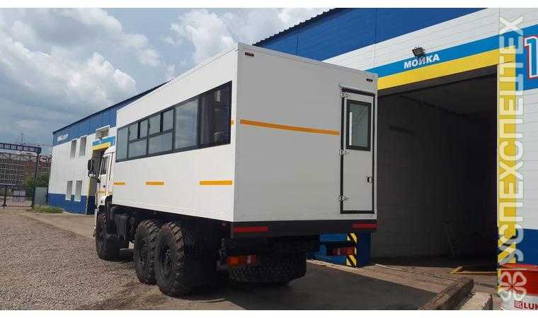 Вахтовый автобус на шасси КАМАЗ 5350 предназначен для перевозки вахтовых бригад по дорогам общей сети.