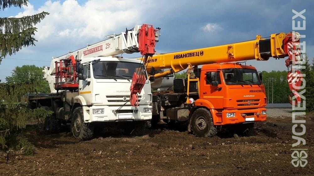 Грузоподъемность 25 тонн, вылет стрелы 22,28,31 м. Есть вездеходы.