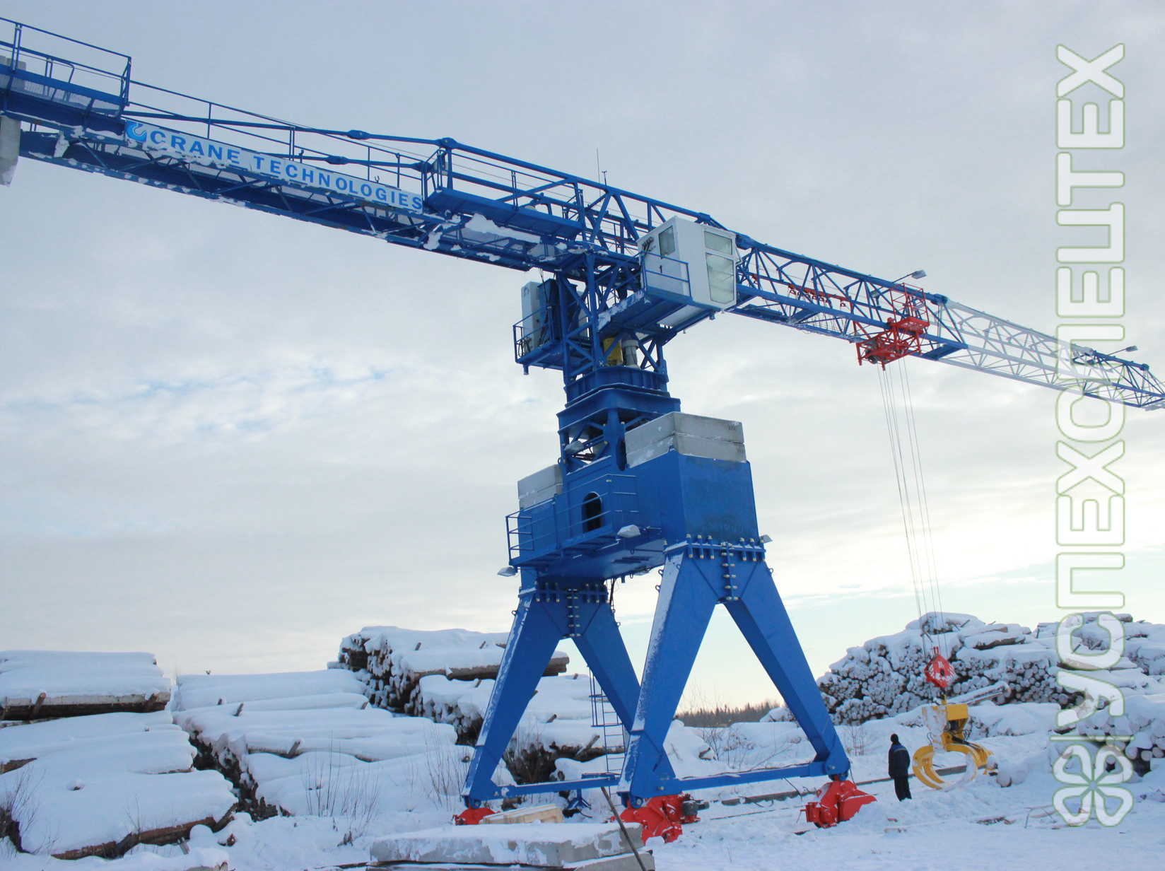 Портальный кран-погрузчик TDKP-10.З00 является передвижным рельсовым полноповоротным краном с неповоротной башней и балочной стрелой.