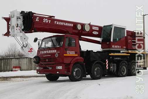Кран автомобильный КС-55727-F, КС-55727-S грузоподъемностью миди (на канатах) 25 т предназначен для выполнения погрузочно-разгрузочных и строительно-монтажных работ c обычными грузами на рассредоточенных объектах.