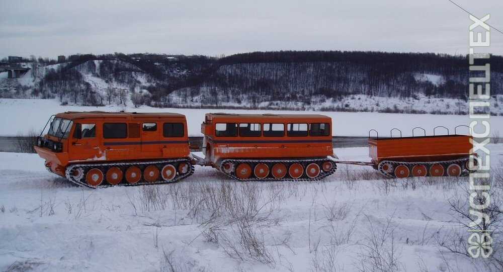 Гусеничная двухзвенная (двухсекционная) плавающая машина высокой проходимости предназначена для перевозки различных грузов и технологического оборудования массой до 4 000 кг в условиях бездорожья, снежной целины и болот всех категорий. Высокая проходимость и маневренность машины в особо тяжелых дорожно-климатических условиях обеспечиваются: