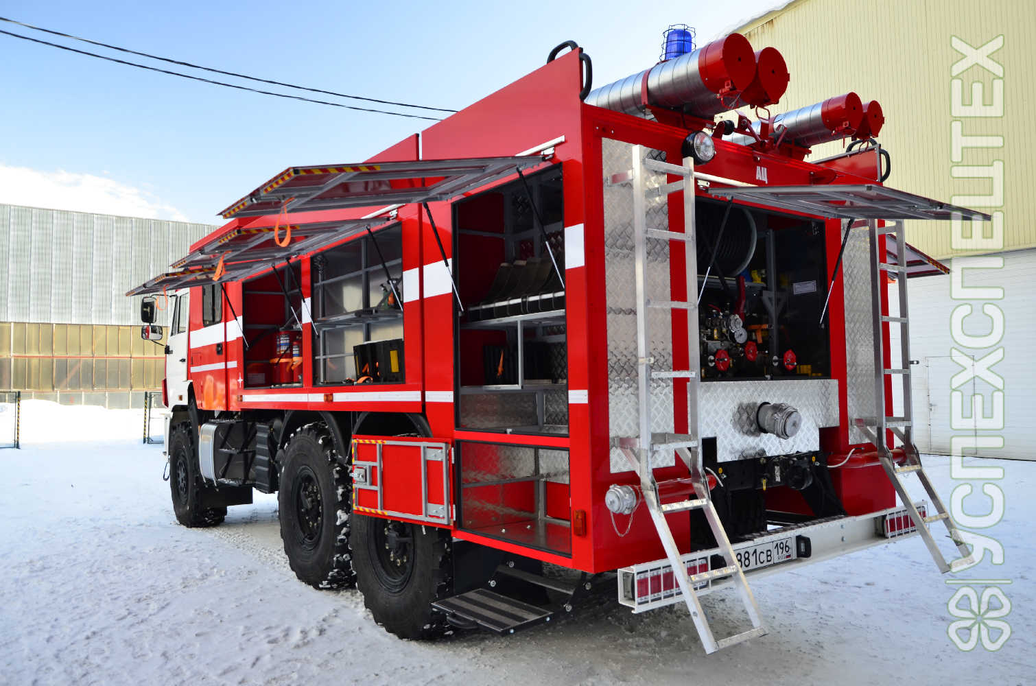 Система компрессионной пены NATISK-800KS. Привод компрессора воздушного от трансмиссии шасси. Рабочее давление 3-10 атм. Максимальный расход раствора 800 л/мин. Дальность струи из ствола ручного до 35 м. Максимальный расход сжатого воздуха 4 600 л/мин. Кратность 5-20. Дозирование пенообразователя 0,6 – 6%. Внутренний диаметр ствола ручного 25 мм (3 шт). Объем производимой пены от 25 000 л («мокрая пена») до 100 000 л («сухая пена»). Базовое шасси КАМАЗ-43118. Колесная формула 6х6. Мощность двигателя 300 л.с. Экологический класс Евро-5. Боевой расчет 6 чел. Цистерна для воды 5 000 л. Пенобак 300 л. Насос пожарный НЦПН-40/100.